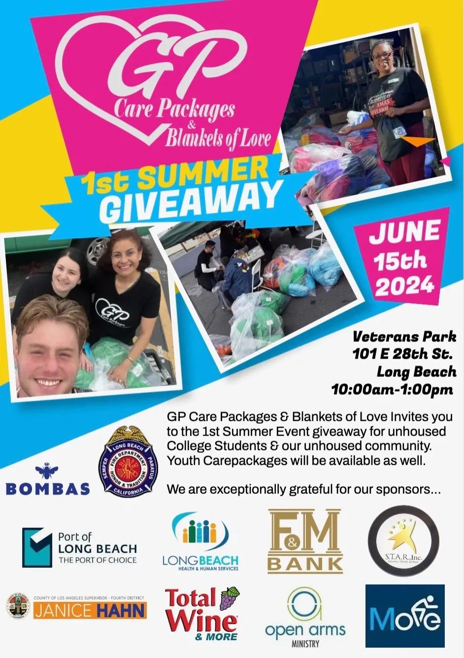 GP Care Packages & Blankets of Love invites you to the 1st Summer Event giveaway for unhoused College Students & our unhoused community. Youth carepackages will be available as well.
